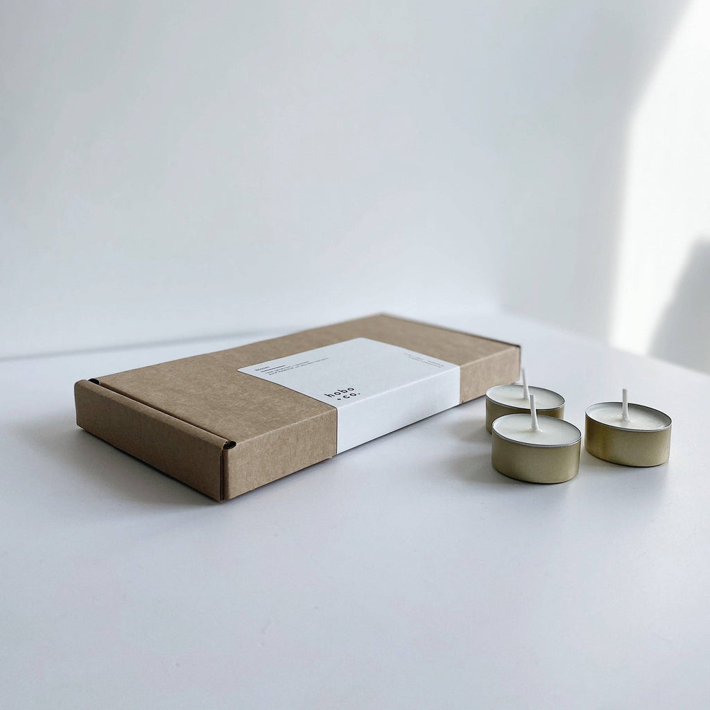 Each pack contains 15 recyclable aluminium soy wax tealights, carefully packaged inside a recyclable kraft box, ideal as a ready made gift.