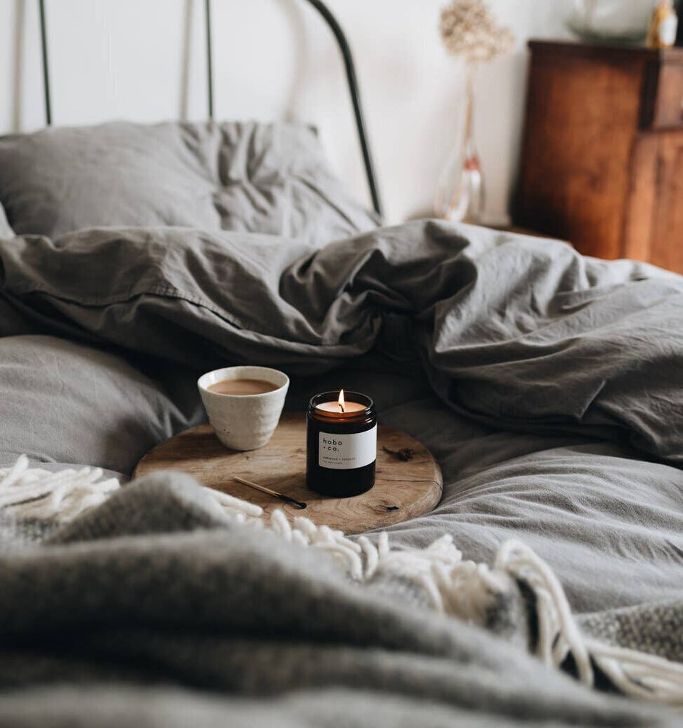 Unbleached cotton wick candle in a reusable recycled glass jar, perfect for wanderers.