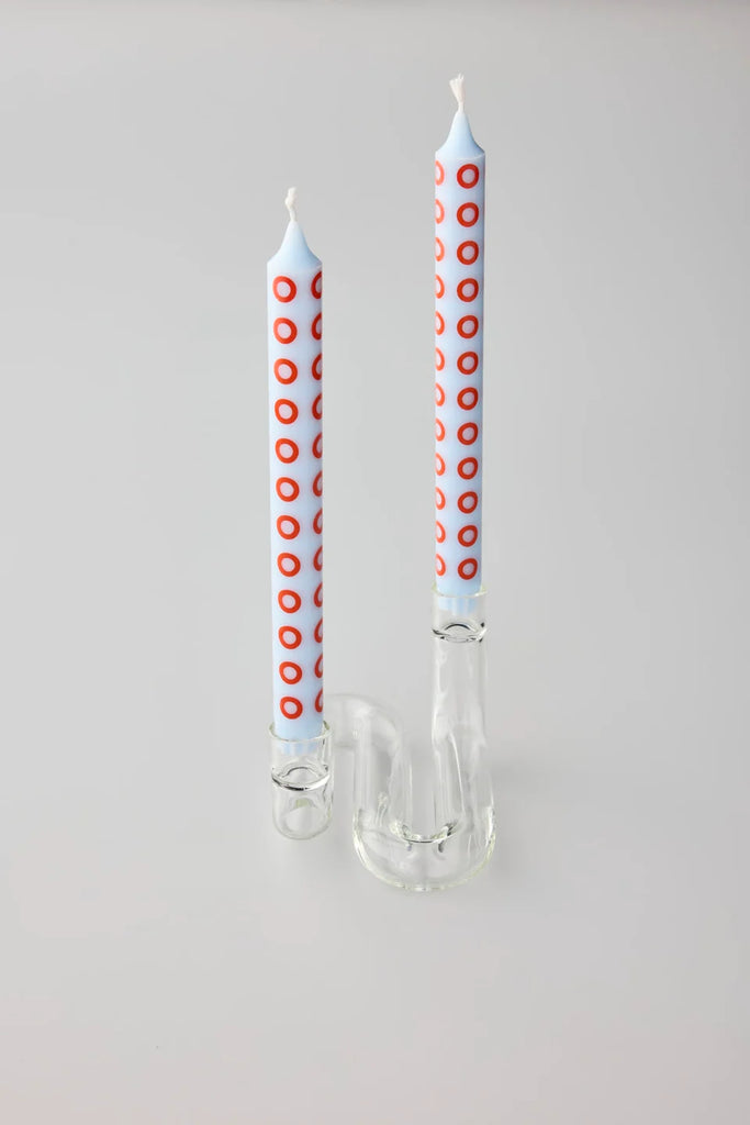 Create a warm and inviting atmosphere with this elegant candleholder. Its design stands out with its organic, undulating shape that creates a sense of movement and lightness. The candleholder is simple and fits perfectly on a coffee table, shelf or sideboard. The minimalist design makes it easy to integrate into any interior.
