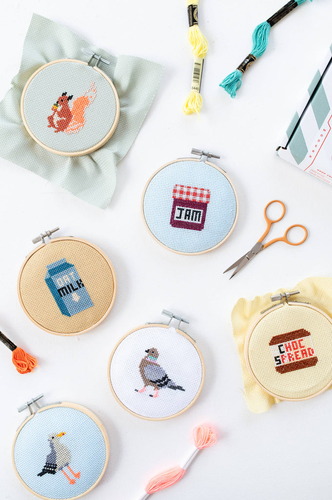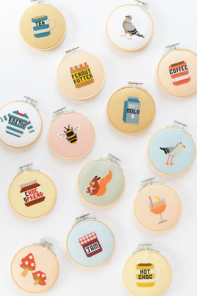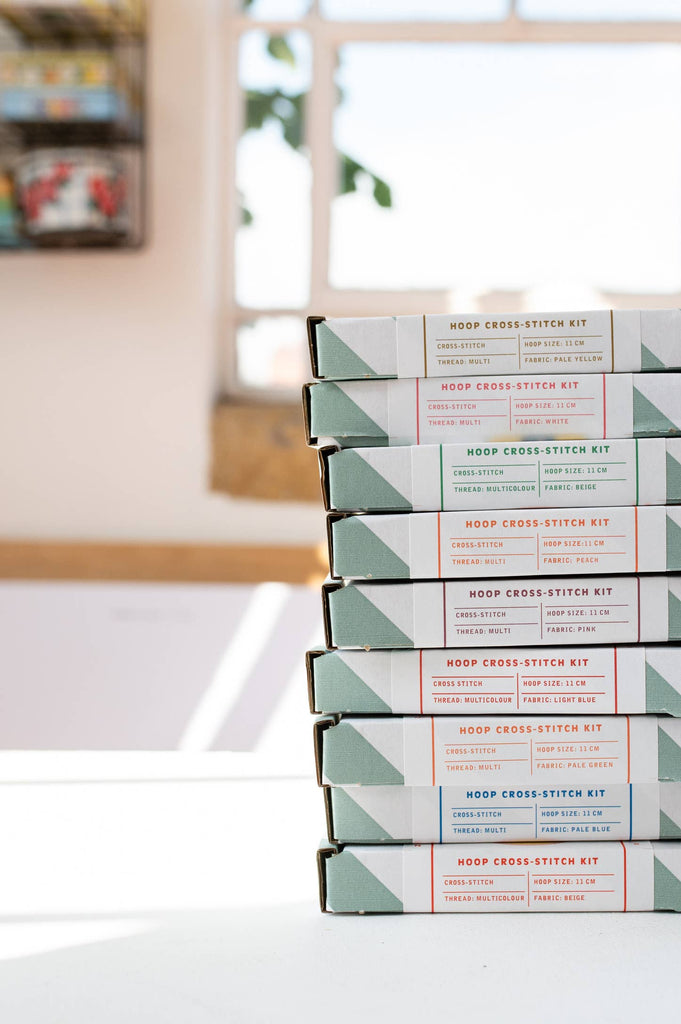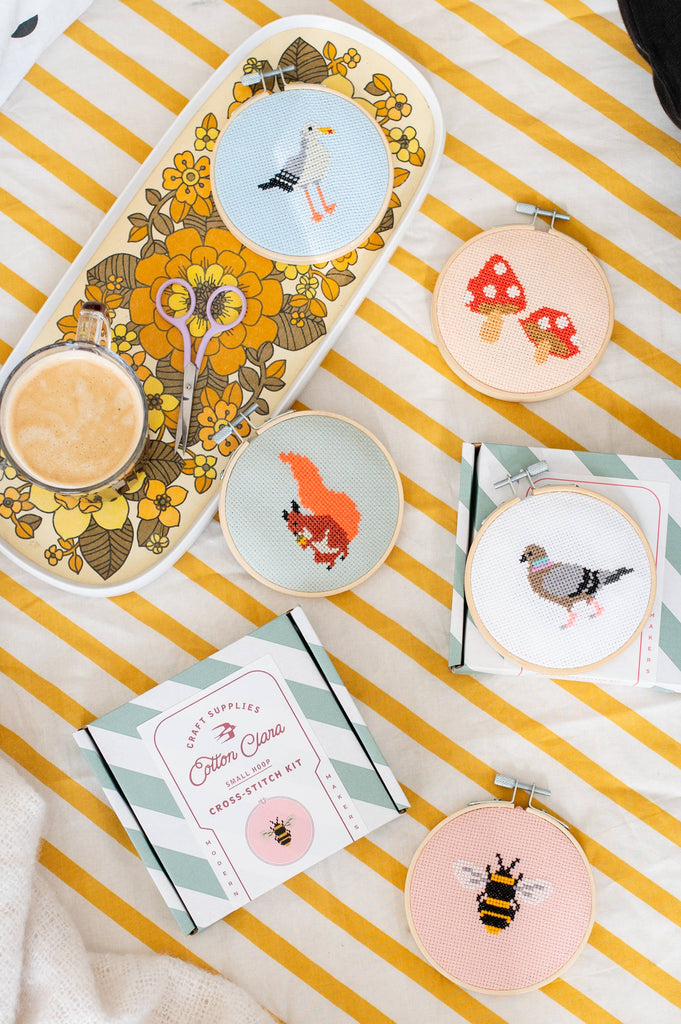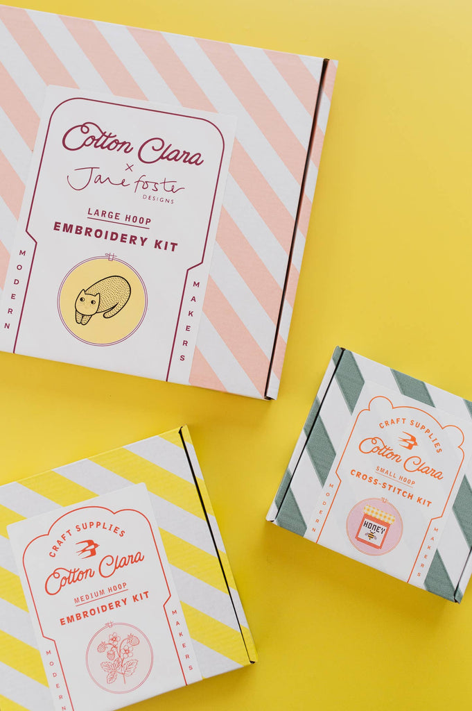 Packaged in our signature plastic-free striped box, this counted cross stitch kit includes: a 11cm embroidery hoop, coloured aida fabric, embroidery thread, needle, full-colour cross stitch chart, wadding, backing disc, and easy-to-follow instructions.