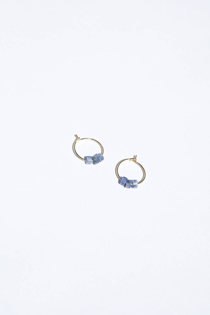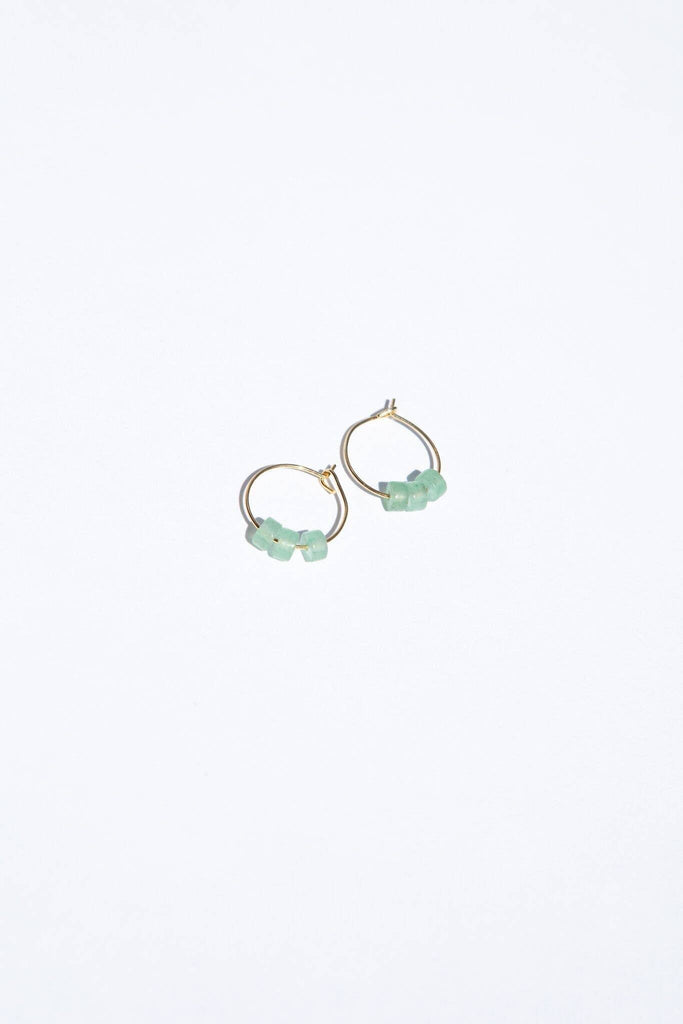 These tiny hoop earrings are decorated with 3 tiny gemstone beads to add a discrete and delicate touch to your look.