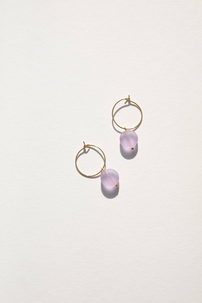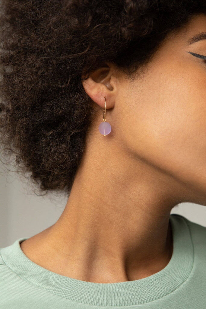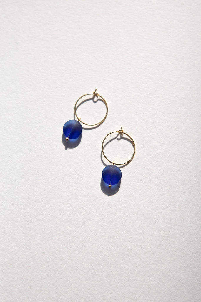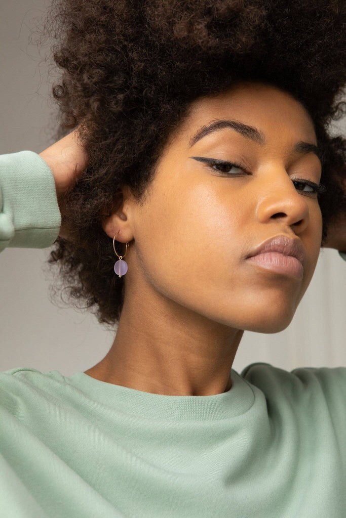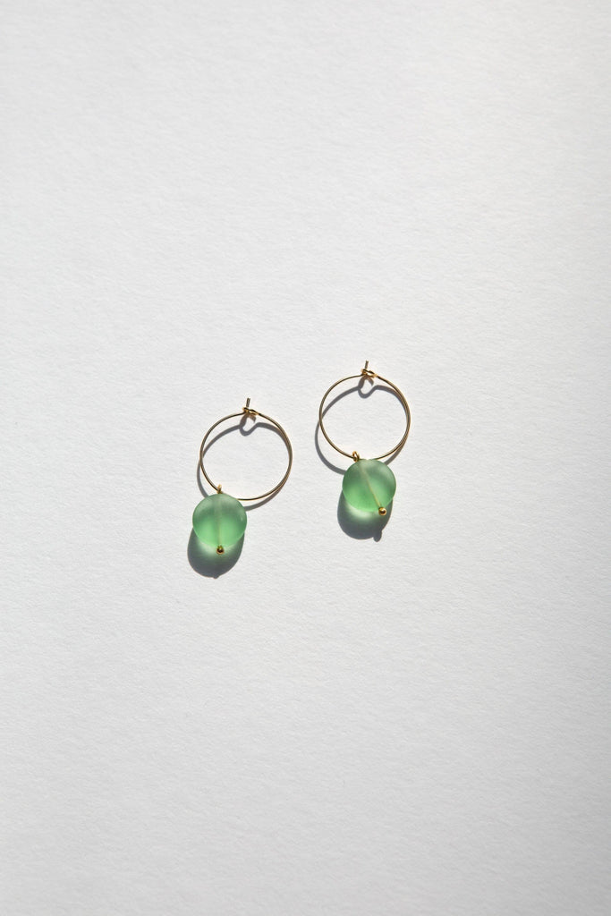 These small hoop earrings are decorated with recycled glass pendants to add a discrete but modern touch to your look. Available in different colors.Hoops : 2 cm - 24k gold plated / sterling silver