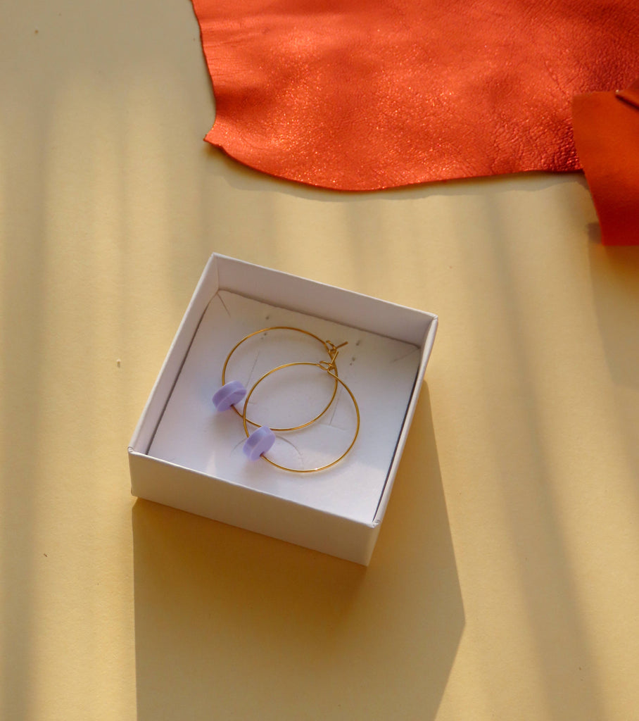 Lasered acrylic circle earrings. The earrings are lovingly handmade in our studio. We used shiny acrylic and highly compatible stainless steel earrings. Our earrings all come in an eco jewelry box, which is also great as gift packaging. Dimensions: 2.5 cm long x 1.2 cm wide. The earrings are particularly lightweight.