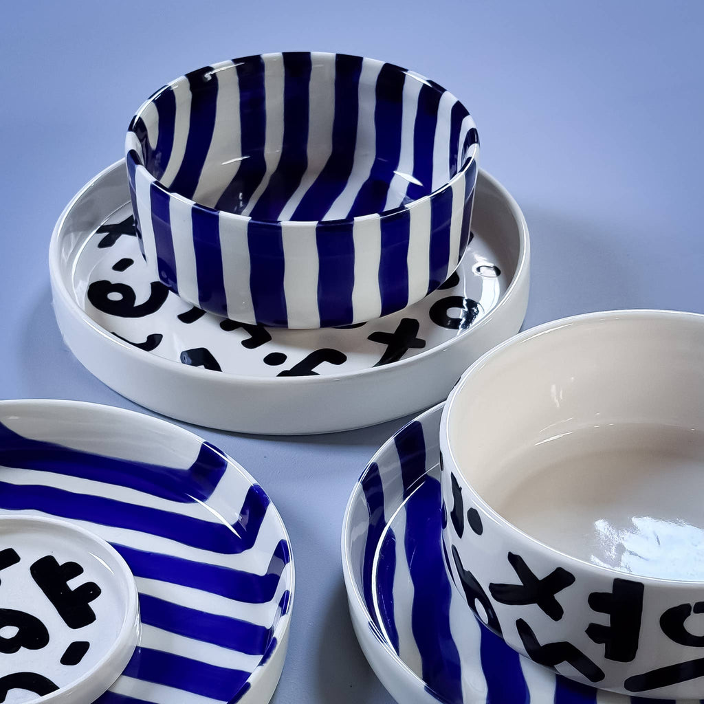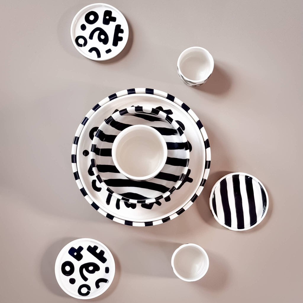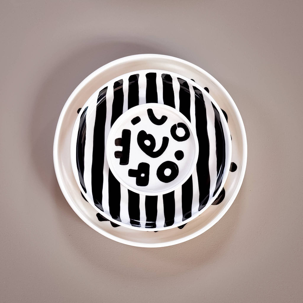 Our hand-painted, graphic tableware is complemented by a special collection. Inspired by the bustling streets of Tokyo and Japanese characters, this collection, with its elaborate hand-painting, creates a highlight.