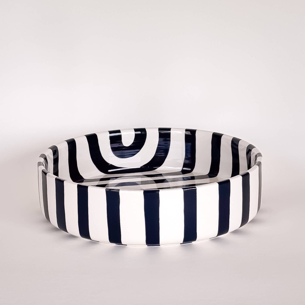 Finally! The Stripes collection has been expanded to include a large bowl. Perfect Dolce Vita feeling is also included with it. Each stripe and the glaze were applied by hand.