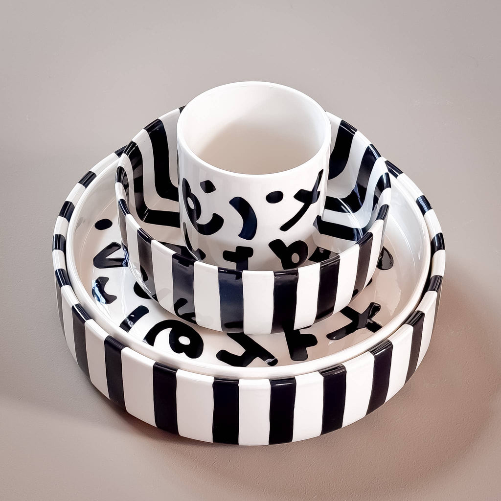Our hand-painted, graphic tableware is complemented by a special collection. Inspired by the bustling streets of Tokyo and Japanese characters, this collection, with its elaborate hand-painting, creates a highlight.