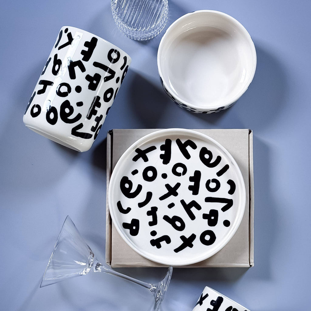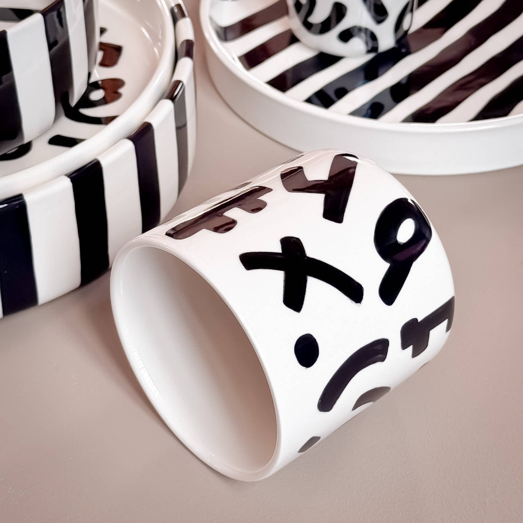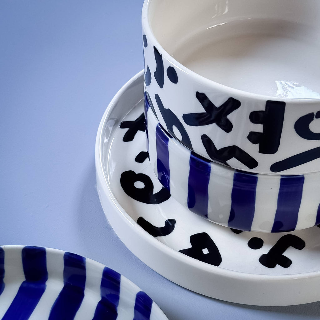 Our hand-painted, graphic tableware is complemented by a special collection. Inspired by the bustling streets of Tokyo and Japanese characters, this collection, with its elaborate hand painting, creates a highlight.
