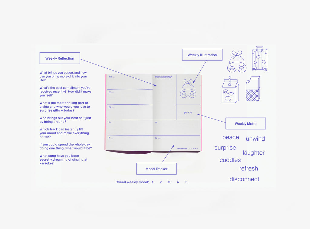 Made in collaboration with Redfries, whose vibrant and playful illustrations add an extra dose of joy to the pages, this diary feels fresh, uplifting, and guaranteed to bring a smile!