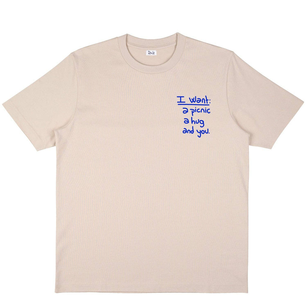 Sand color t-shirt, made with 100% organic cotton and recycled in our certified workshops in Spain and Portugal. 185 GSM.