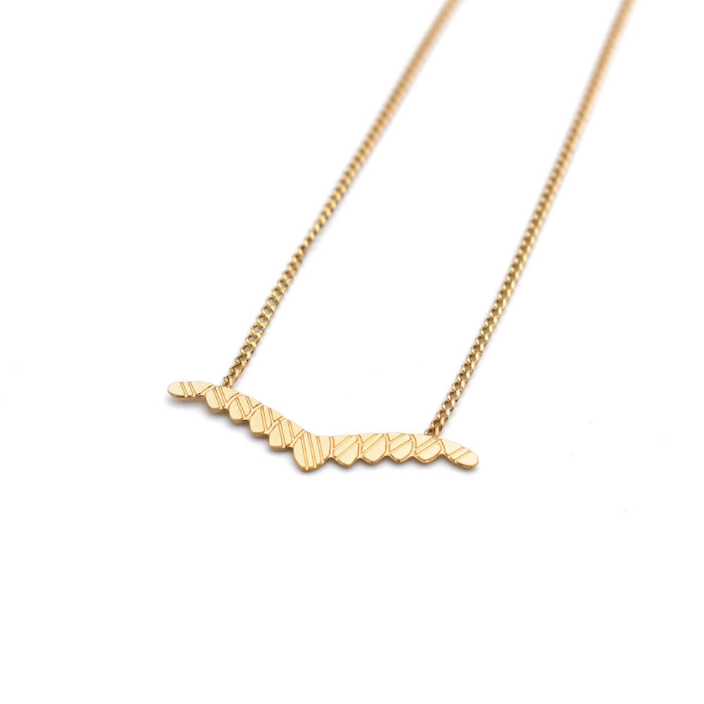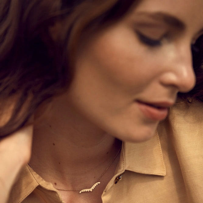 • Small necklace gilded with fine gold, with delicately engraved plumage pattern, mounted on fine chains. A very thin necklace to wear very easily on a daily basis. Timeless and discreet, it delicately highlights your neck or décolleté. • Pattern dimensions: W: 2.4cm x H:0.5cm.