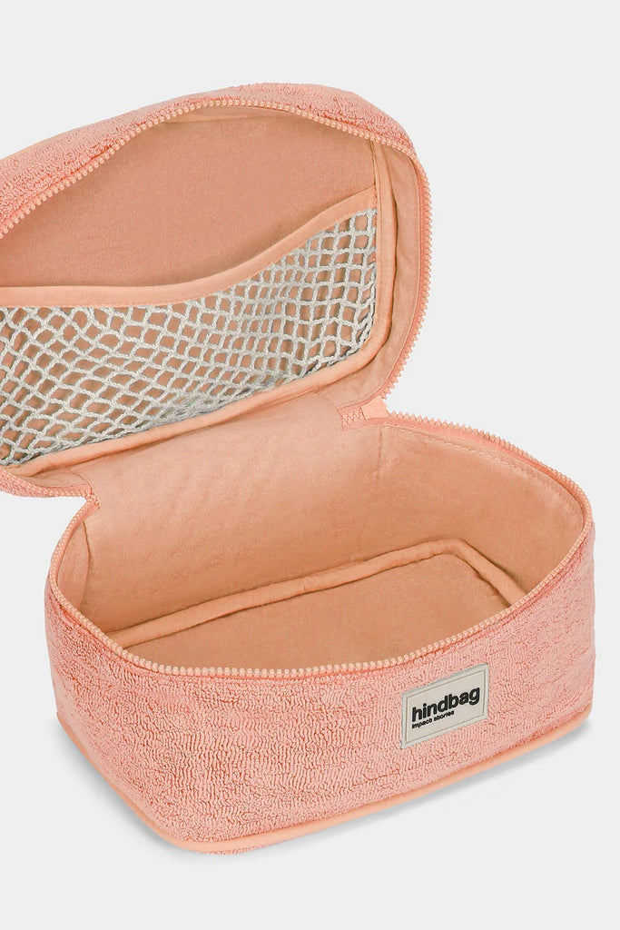 Gaspard, it is the A vanity case for taking all your favorite products on vacation. It's not only stylish and colorful, but also practical. Its exterior handle makes it easy to carry, while its interior mesh netting holds all your small items. In almond green, coral pink, or blue, let yourself be seduced by our organic cotton terrycloth bag. Comfortable and lightweight, the terrycloth collection will be perfect for your seaside getaways!