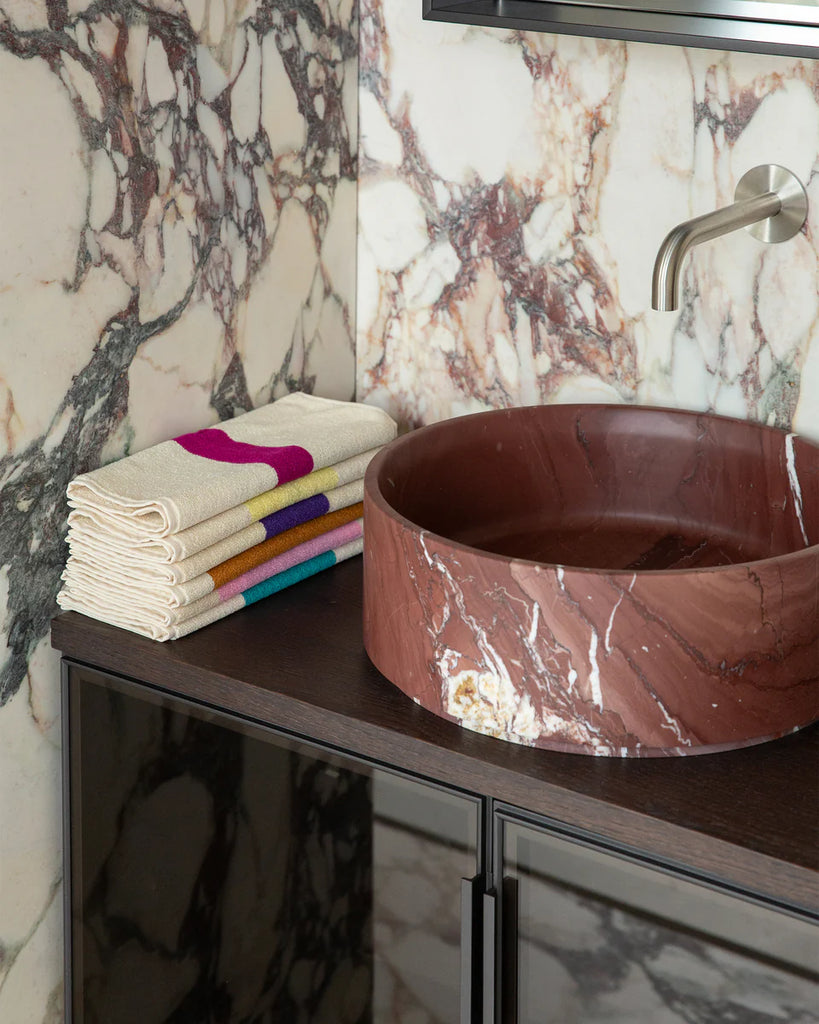 The guest towels are 30x50cm, made of wonderfully soft organic cotton and have a weight of 550 grams per square meter. Thanks to the short loops, the towel not only feels compact, but is also exceptionally soft.