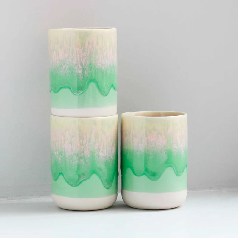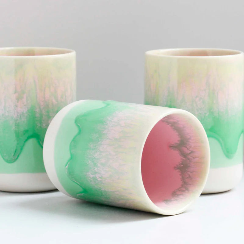 The Slurp Cup is a hand-cast and glazed porcelain cup.