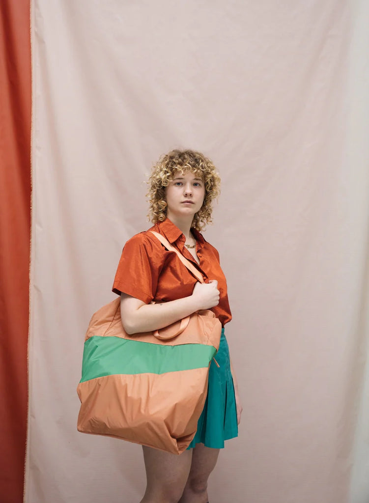 This design adds something extra to our usual minimalistic style. The New Stash Bag features a zipper at the top and includes an inside zipper pocket, providing a designated space for your smaller items. This bag will more likely stay upright because of its sturdier back and is therefore perfect for stacking your stuff or groceries.