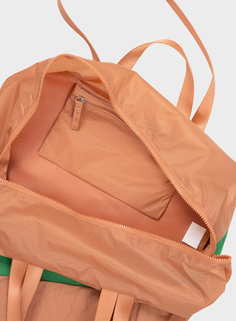 The back of the bag is made of our 300D heavy-duty fabric, which is Bluesign® certified and 100% recycled ripstop polyester, treated with a recycled TPE coating.
