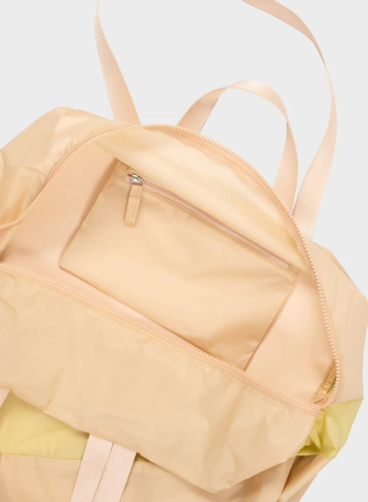 This design adds something extra to our usual minimalistic style. The New Stash Bag features a zipper at the top and includes an inside zipper pocket, providing a designated space for your smaller items. This bag will more likely stay upright because of its sturdier back and is therefore perfect for stacking your stuff or groceries.