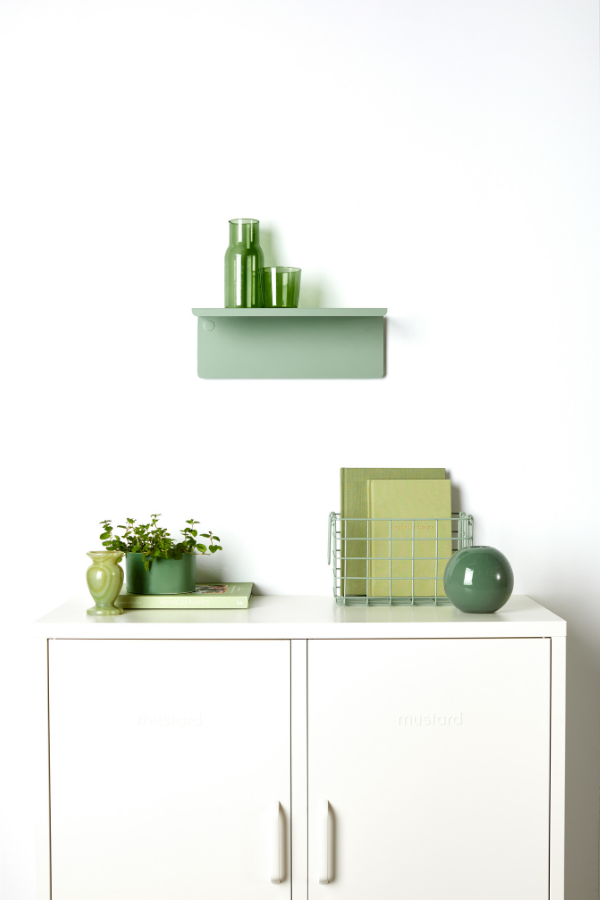 The Ledge is made from the same powder coated steel as our lockers, in our signature rainbow of colours. The last image shows the colour of this shelf as best as we can digitally. Colours will vary on different screens, and lighting will change how the colour looks in your space.