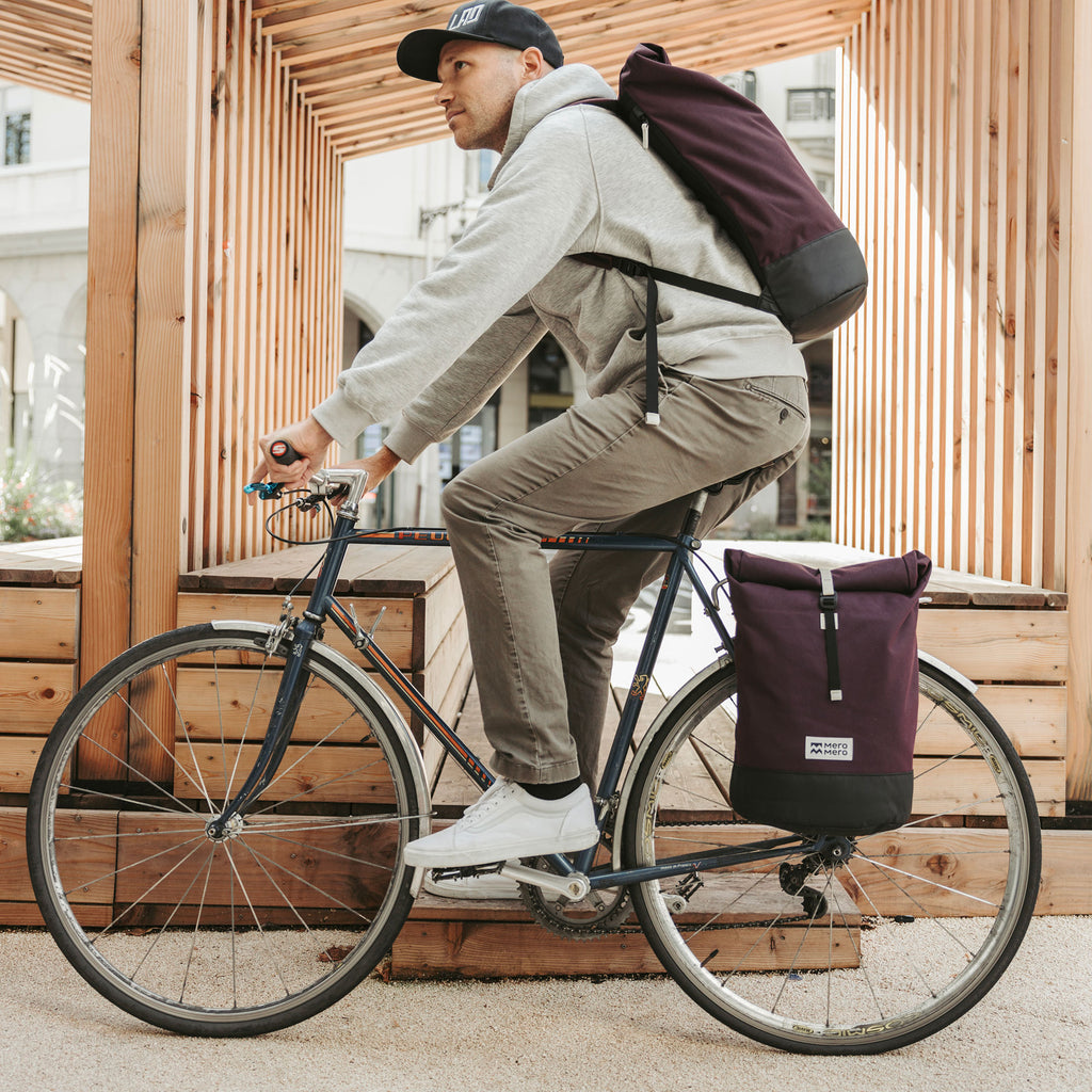 The concept, which won a French Outdoor Award in 2020, has not changed: it is still an ingenious and comfortable little roll-top backpack designed to be attached to a bicycle. In addition to its name (it is now called ANNECY), we added a new material for the base and the back, reworked the Velcro and added a small outside pocket at the base of the back. Inside, the foam in the computer compartment is thicker and the light lining has a nice design by MeroMero. In short: the same, only better!