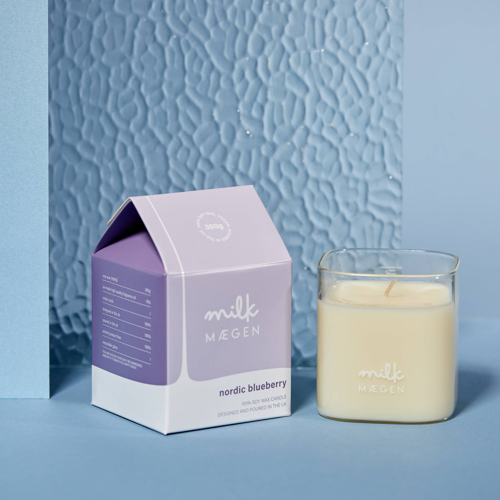 Designed in the Maegen studio this 100% soy wax candle is made in the UK. Fragranced with our nordic blueberry scent with ripening berry top notes, sweet floral heart and a yogurt cream base.
